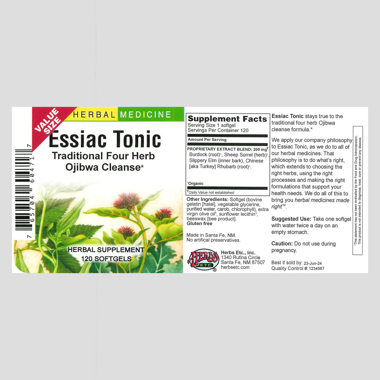 Experience the power of the traditional Ojibwa four-herb cleanse with Essiac Tonic. This gluten-free formula supports your body's natural detoxification, promoting overall wellness and vitality. With 120 soft gels, it’s an easy addition to your daily routine for a gentle, effective cleanse.