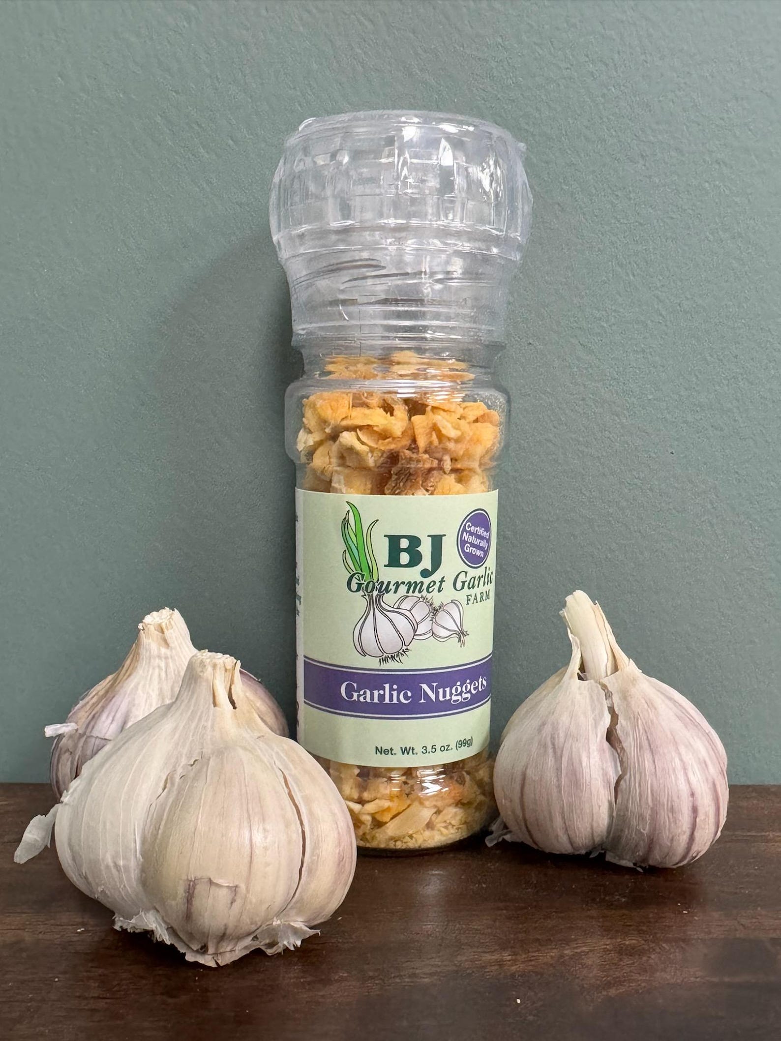 Experience the bold, natural flavor of 100% pure dehydrated fresh garlic with our Garlic Nuggets W/Grinder 3.5oz. Conveniently packaged with a built-in grinder, it delivers fresh garlic taste instantly, enhancing your dishes with ease and freshness. Perfect for cooking enthusiasts seeking authentic garlic flavor without the mess.