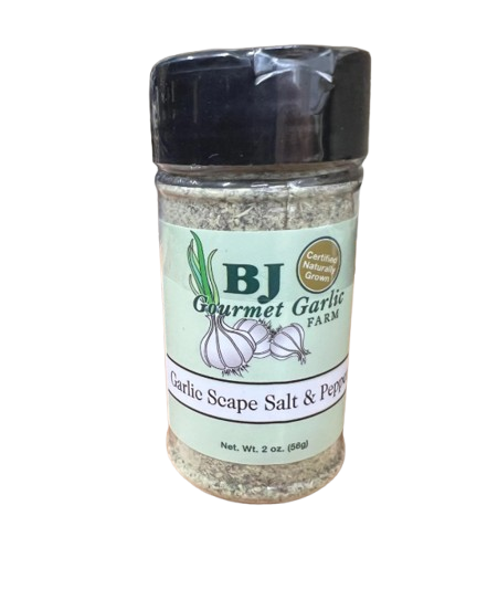 Garlic Scape Salt & Pepper blends mild garlic scapes with pink Himalayan salt and black pepper for a flavorful seasoning that’s gentle on sensitive stomachs. Vegan and gluten-free, it’s the perfect natural boost for your favorite dishes.