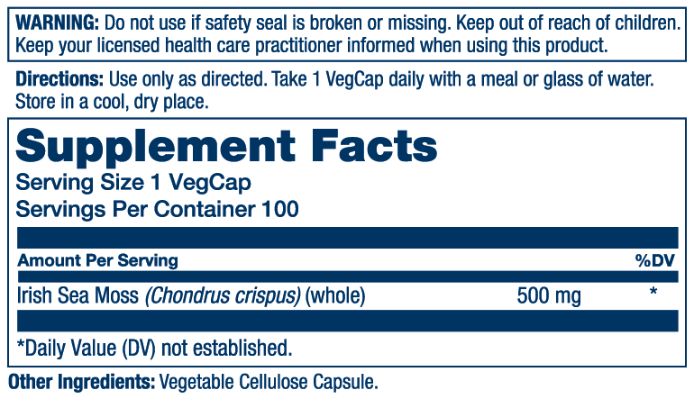 Nourish your body with our Irish Sea Moss capsules! Packed with fiber and prebiotics, our vegan and gluten-free formula promotes digestive health and overall wellness. Enjoy 100 capsules of natural goodness!