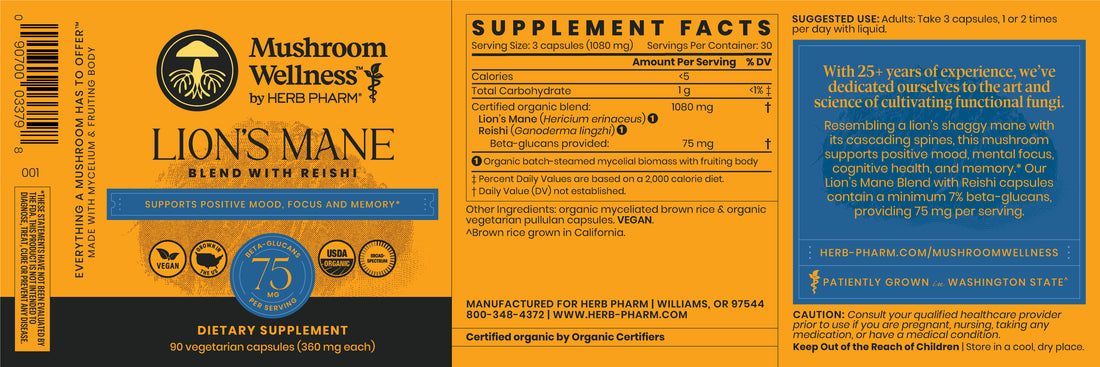 Enhance your cognitive function and mood with our USDA organic, vegan Lions Mane with Reishi capsules. Designed to support mental focus and memory, this 90-count supplement helps you stay sharp and balanced naturally every day.