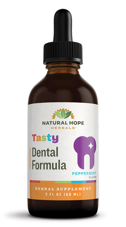Peppermint leaf masks the strong taste of black walnut hull in this kid-friendly tincture, making dental care enjoyable. Tasty Dental Formula supports healthy teeth naturally, encouraging children to maintain good oral hygiene with a pleasant flavor.